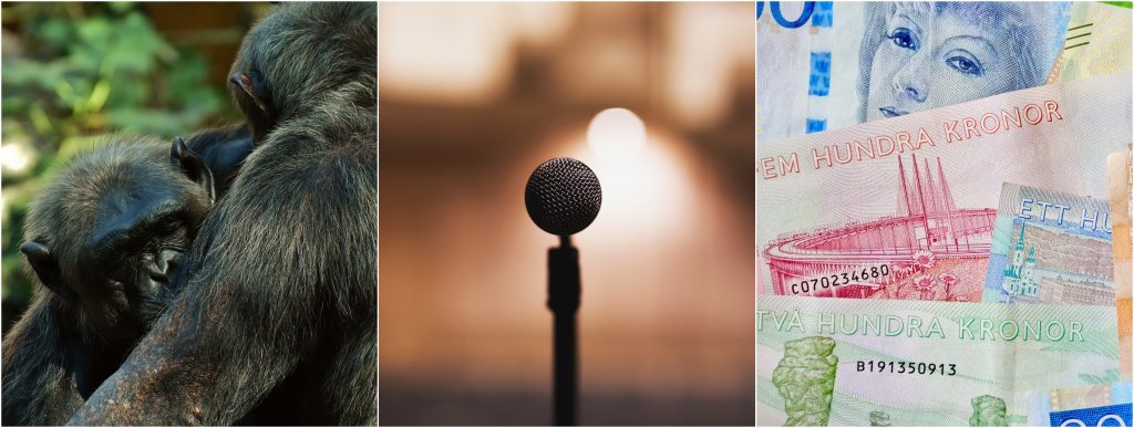 Bland veckans nyheter hittar vi schimpanser, kontanter och scenpoesi. Foto: Pixabay.